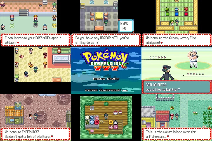 Pokémon Emerald Isle é uma hack rom de Pokémon Emerald focada em uma experiência curta, acessível e criativa, ambientada em uma ilha totalmente nova próxima à região de Hoenn. O grande diferencial do jogo é o sistema de gacha, onde o jogador aposta no Legendary Luxe Casino para obter praticamente todos os Pokémon da Pokédex Nacional da 3ª geração.